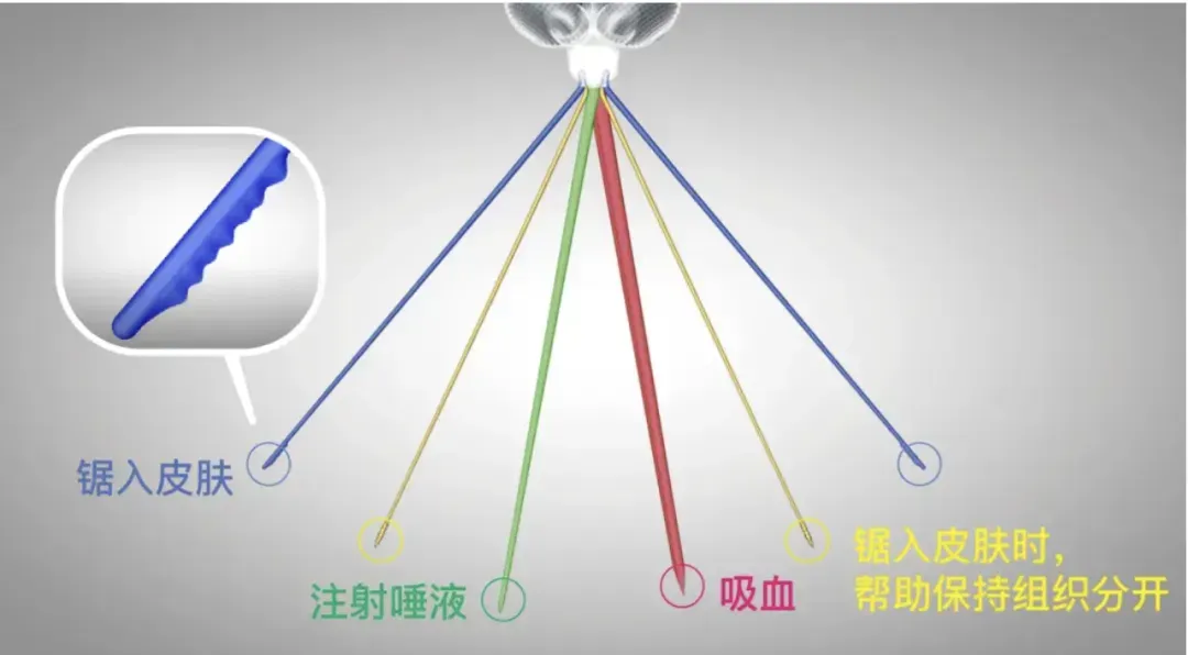 而它们,通通隐藏在一个可伸缩的喙鞘里。这个喙鞘本身并不刺进皮肤,只负责在外部稳稳支撑整个系统,像是机械臂的基座,设计感拉满。